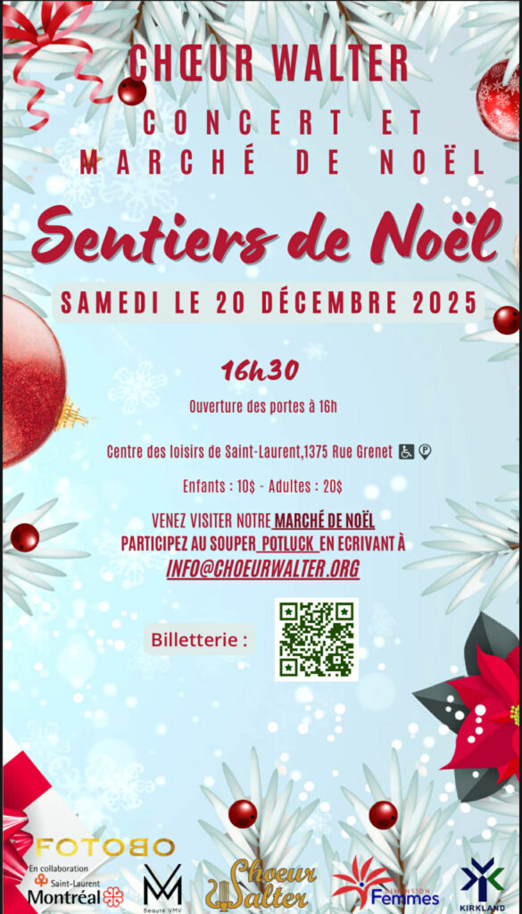 Chœur Walter est une chorale OBNL, pour petits et grands, qui propose un programme musical de qualité aux personnes qui ont des moyens financiers restreints. OBNL depuis 2011, cette entreprise culturelle est en partenariat avec l’arrondissement de Saint-Laurent, depuis plus de 13 ans, et la ville de Kirkland depuis 5 ans. L’organisme communautaire La Maison d’Haïti est aussi son allié, depuis 7 ans, tout comme l’organisme communautaire La Perle Retrouvée depuis 2 ans. La Société de Recherche et de Diffusion de la Musique Haïtienne (SRDMH) est un nouveau partenaire de Choeur Walter. Dans un futur proche, le Choeur Walter souhaite également propulser École Walter afin d’offrir un programme musical complet.